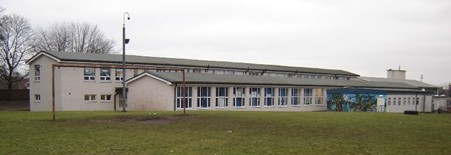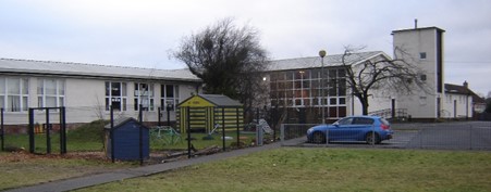 Illus 3: Stenhousemuir Primary School looking north to main entrance in 2023.