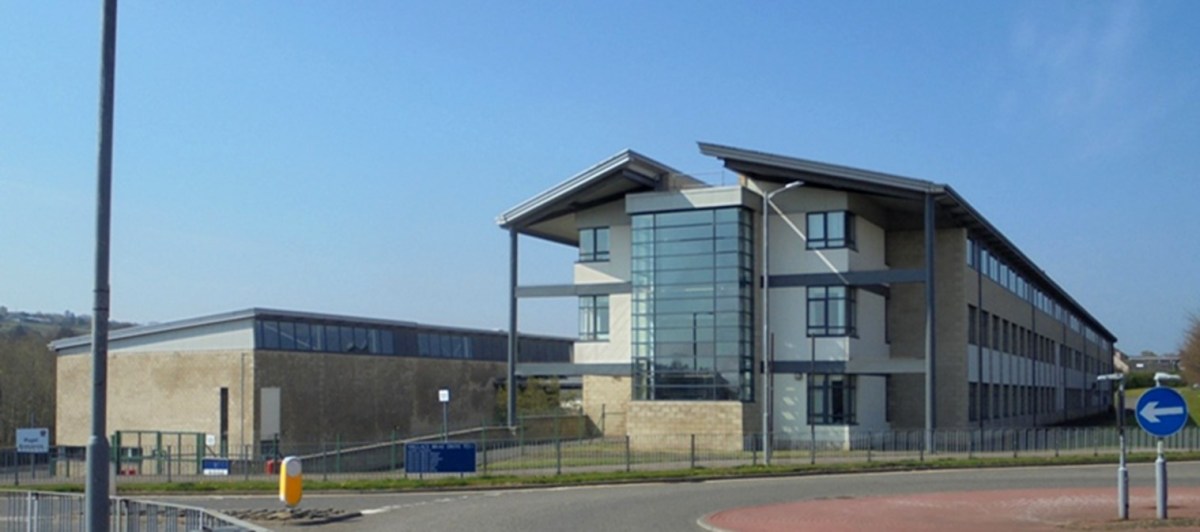 Built and designed by the Parr Partnership in 2000 for 1,000 pupils. The site is on the south side of Newlands Road, opposite to the Polmont Young Offenders’ Institution. The main block is parallel with the road and is three storeys high with a split-section clerestory, ribbed aluminium roof, and ship-like gables containing glazed stairways. To its south the lower slopes are occupied by a parallel block containing the entrance, recreational facilities including a swimming pool, communal hall and dining room, and offices. The playing fields are on the far side of the Polmont Burn. The school replaced Woodlands High School in Falkirk.