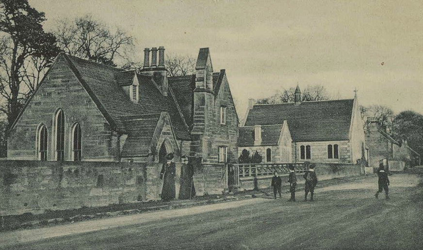 The narrow strip of land on which it was built fronted the main road and was part of the Polmont Park estate. The Speirs family remained as the superiors of the land and it was handed over to a management trust so long as it was used for educational purposes. In the event of that function ceasing it would revert to the superior. The new building was a substantial stone-built school with a hall-type classroom on the west and a two storey house on the east. The classroom was aligned west/east and has a tall three-light window in the west gable, a Gothic entrance porch on the south wall and a stubby chimney stack on its east gable. The roof line extends beyond the latter to meet the north/south roof ridge of the house.