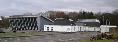 A large hall was constructed in the north-east angle of the school in 2005. It dominates the complex by its height and grey-clad walls, the north wall being composed of glass panels set at an acute angle to the ground and “propped” up with large steel rods.
