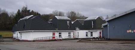 St Margaret’s Primary School was built in the 1970s and replaced Polmont Public School and the junior classes at Redding School. While the school was being built the pupils went to a building at Greenpark, Polmont, which is now part of the Greenpark Community Centre. The name, St Margaret’s, was taken from a previous private girls’ school that lay a little to the east (see Meadowbank and St Margaret’s School). The primary school was designed by Central Regional Council Architectural Services in 1977. The buildings consist of a series of single-storey white rendered brick blocks with steep-sided slate-clad attics arranged around two small quadrangles.