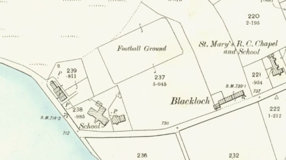 The school was located at the north-east side of the Black Loch and was occasionally referred to as “Lochside School.” Confusingly, it directly replaced the Lochside Colliery School which was 30m to the west. Only 150m to the east was a Roman Catholic School. The site is raised above the water and provides a magnificent setting. The building was T-shaped in plan with the main classrooms arranged in the long NW/SE block and an infant room tacked onto the centre of the north side. The principal classroom was 64ft long by 26ft broad and could be converted into two separate classrooms by means of folding doors. At each end of this classroom were smaller classrooms, each 16ft by 18ft, with a retiring room for the teachers. The infant classroom was 24ft square. The cost was put at £2,500.