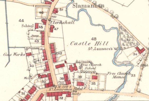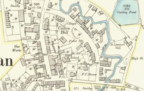 The Free Church in Slamannan was created in 1843 immediately following the Disruption and shortly thereafter a school was established. It probably met in the church until sufficient funds could be gathered to erect a schoolroom. In 1849 Robert Mason was appointed as the teacher. That year the Parochial Board had considered acquiring a site for a school adjacent to the post office from Mr Rankin of Castlehill. For convenience it chose a site next to its existing school instead and shortly afterwards the Free Church obtained the abandoned site. By 1852 the sum of £154 had been subscribed and it only took another £80 in addition to a government grant to erect the school building. The school opened in 1854 with a primary school, a teacher’s house, and, unusually, an Industrial school. Miss Boyd was appointed as head of the industrial school which taught sewing, needlework, cookery and the like. Within a year 44 girls attended that side of the school and this rose to 70 in 1870.