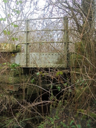 The splendid road bridge at Pow Mill (NS 8680 8677) still has its steel girders in place resting on the rock-faced coursed masonry abutments. Parts of the station buildings at Airth remain and the site is now used by a cattery and kennels. The adjacent road bridge (NS 8715 8725) is still in place but the span is now supported by a bank of earth which blocks access.