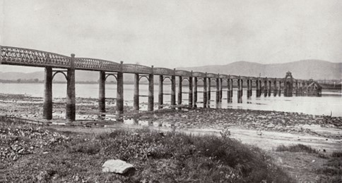 The superstructure included lattice main girders with curved tops beams to give more effective depth at the centre where the strain on the beams was greatest, imparting a more graceful outline to the bridge. On these rested the cross girders of simple plates and angle irons, which in turn carried the rail bearers and buckle plates forming the roadway of the bridge. The butting ends of the girders were covered by semi-circular cast-iron pilasters of an ornamental nature sitting on the ashlar columns. The deck was raised 24ft above high water level. The bridge engineers were Crouch & Hogg, Glasgow with Joseph Wilson as the resident engineer.