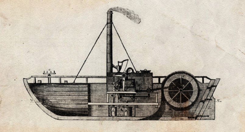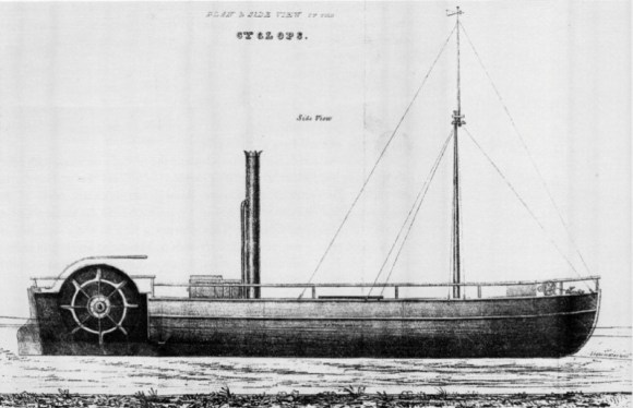 “Being aware that the chief objection to the first side-wheeled steamboat, built by Mr Symington in 1801, was the impression that the side-paddles caused too much surge and injured the banks, on taking the model home, and having made the trial I found the greatest speed was produced by the side-paddles when there was no surge, but when the water was not smooth, the stern-propeller produced fully a little more speed, and caused very little swell.”