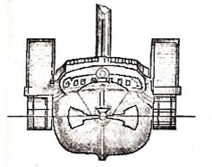 Another canal steamer, the Edinburgh, built by Wilson at Tophill, commenced the night service between Port Hopetoun in Edinburgh and Port Dundas in Glasgow on 28 September 1832, along with the horse-drawn swift boat Velocity. The Edinburgh carried six tons of goods and 40-50 passengers. She was propelled with two high pressure engines of seven horse power each, at the rate of six miles an hour. The machinery was placed amidships, and the paddle wheels at the stern; the 16ft long space in between being occupied as a cabin for the steerage passengers. The hold for the goods and principal cabin were in the fore part of the vessel. She was leased to the London Leith Edinburgh and Glasgow Shipping Company for operational use. It is surprising that this vessel, which was built at Tophill with the Edinburgh service in mind, was found after just a few months to be unsuitable for the Union Canal and was withdrawn. She was returned to the Canal Company and taken back to Tophill where she was converted for use as a tug in Grangemouth harbour where she gave many years valuable service, latterly with side paddles.