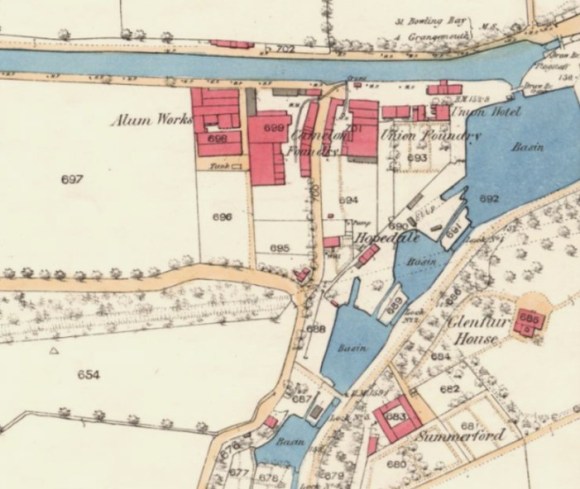 In March 1859 his son, Robert Wilson, returned to the boatbuilding yard at Port Downie and announced that he was ready to receive orders for the building and repairing of wood and iron vessels for the Forth & Clyde, Monkland, and Union Canals (Falkirk Herald 10 March 1859, 2). The first iron screw lighter, the Henry of Netherwood, was duly launched on 3 July 1860. It was built for John Watson senior, coalmaster, Glasgow. She was equipped with a pair of high pressure engines with a horizontal tubular boiler by John Yule & Co of Hutchesontown, Glasgow. Thomas Wilson was present at the launch. Other innovations were introduced. Robert Wilson placed the rudder around the propeller of the Henry – the first time this had been done in central Scotland. Its unusual occurrence is well illustrated in the newspaper report: