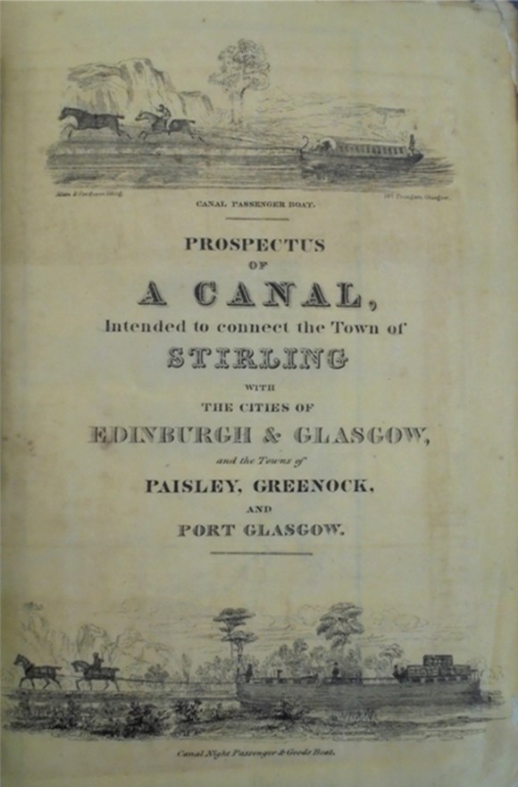 In 1835 a Prospectus was published along with a report by the famous engineer, John Macneill, for the construction of a canal from near Castlecary on the Forth and Clyde Canal to Stirling. At the time railways were in their infancy but were gathering a head of steam. The Prospectus therefore went out of its way to explain why the promoters had chosen a canal rather than a railway for this line of communication. It fully admitted that railways were faster, but pointed out that they were less efficient than canals for the carriage of heavy goods. For passengers, canals were far more comfortable, the ride being quieter and smoother, and the accommodation being less cramped. The passenger boats could stop anywhere along the length of the canal, whereas the trains required so much energy for the locomotive to start up that the railways only provided a limited number of stopping places. One of the most important factors laid before the public was that canals were cheaper to build. The cost of forming the Stirling Canal, it was boldly stated, would not exceed a fifth of the actual cost per mile of the Liverpool Railway. Of course it made no mention of the difficult terrain that that railway had had to traverse. Macneill estimated the cost at £93,681 and so the capital of the company formed for its construction was set at £100,000 in 2,000 shares of £50 each. The joint stock company was to be called the “Stirling Canal Company.”