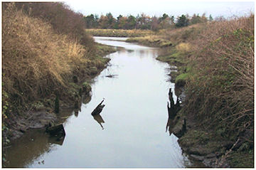 Illus 4: The Temporary Cut looking north to the River Carron with the timber posts of the lock chamber visible.
