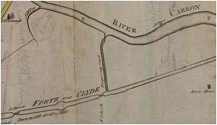 Even though the Forth and Clyde Canal had been open to Kilsyth for several months the revenue was still quite small and the Canal Company repeated its claim that the parliamentary Act did not allow it to spend any money on side cuts.  Just what happened next is uncertain but it seems that the Carron Company started to use the Temporary Cut to enter goods from the river to the Forth and Clyde Canal and thence to Kilsyth.  It saved the Carron lighters the long and arduous trip around the loop at Newton.  In 1771 Sir James Livingstone of Bantaskine had a right of servitude on the Temporary Cut and it had evidently not been physically decommissioned.