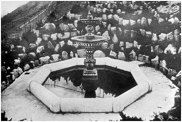 The Braes of Bo’ness gave rise to a small number of springs and several of these were enclosed to produce dipping wells. To the east of the town the most reliable and hence best known was the Barrel Well, also known as Boslem Well, on the high ground in what became Victoria Park. This was heavily used by the local populace. In 1856 the Ordnance Surveyors noted that it was: