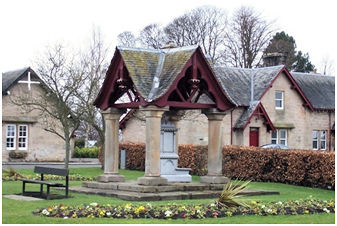 The well at Dunmore village is shown to the south of the old houses on the 1860s Ordnance Survey map (NS 89298942). The houses were subsequently demolished and replaced by a model village arranged around a square. The old well was still there when the 2nd edition map was surveyed but was now joined by a newcomer which formed a centrepiece of the public open space.