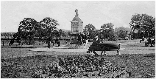 This monument is sometimes also referred to as the Dollar Fountain after the donor, Robert Dollar, who paid for its erection in 1912. It is centrally placed on the west side of Victoria Park facing Thornhill Rd on the traditional site of the battle of 1298 and is dedicated to Sir John De Graeme. The monument takes the form of a polished granite drinking fountain with arched recesses on each of the 4 sides. It is surmounted by a canopy bearing a sculpted lion holding a shield. The base is 105 cm square and rests on a three tier plinth. The two panels in the recesses on either side of the water spout are inscribed: