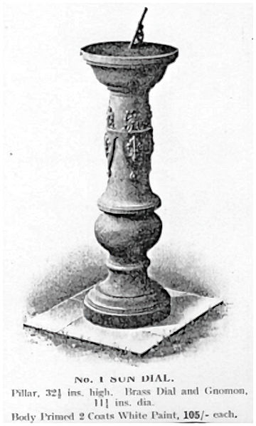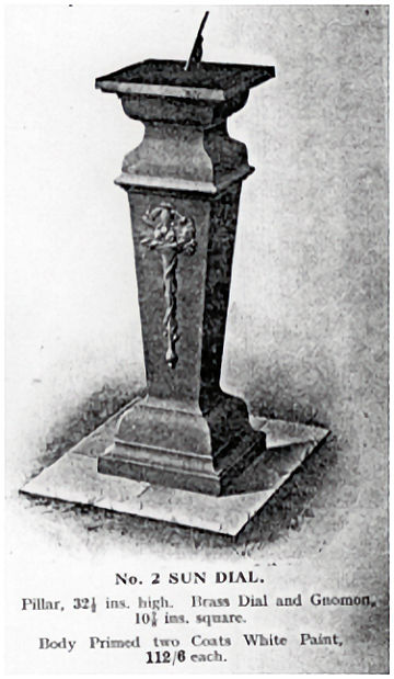 It is appropriate to mention that at least one of the local iron foundries, that of the Callendar Iron Company, made cast iron sundials for the rising middle classes. Two ornate examples are depicted in its catalogue. The site of the foundry is now occupied by the cinema in the retail park in Falkirk.