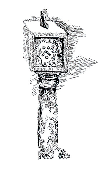 The horizontal sundial stood in front of the great gate to the walled garden c250m west of Kerse House. It bore the coat-of-arms of Thomas Hope and his wife in a recessed panel on a plain cube surmounting an ionic column. In 1638 William Livingston of Kilsyth sold Kerse to Thomas Hope of Wester Granton. Lord Thomas Hope had led a successful career in the legal profession and was very active in the affairs of state; from 1641 to 1643 he was Justiciar General of Scotland.