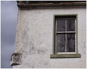 Kersie House is an interesting example of a minor laird’s house of about the middle of the 17th century. It was probably erected around 1645 when Harry Elphinstone of Calderhall acquired the estate from the Earl of Mar. Fleming in his drawing of the house shows a sundial as a prominent feature on the south-west corner of the building, though he places it a little too high. It is a square sundial with two faces projecting from the south-west angle at first floor level.