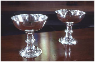 “eight pounds Sterling or thereby due to the Goldsmith for renewing a pair of old Communion Cups.”