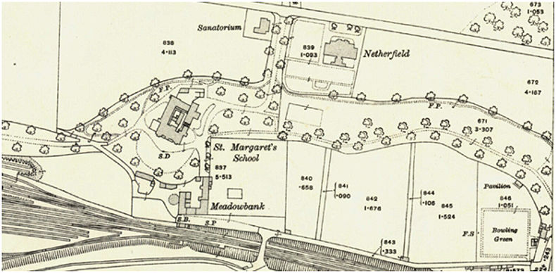 Illus 8: The Tennis Court at St Margaret’s stood on the middle ground with Netherfield below.