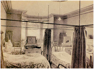 Illus 13: A Bedroom in the old Mansion used as a Dormitory with curtain dividers.