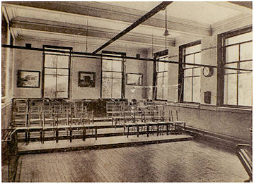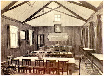Illus 15: The Dining Room at St Margaret’s in a single-storey hut on the north side of the courtyard. The Latin banner, presumably the school motto, reads “QUACUNQUE HONESTA” – ‘Whatever Things Are Honourable/Virtuous’ (read by A. Ronald).