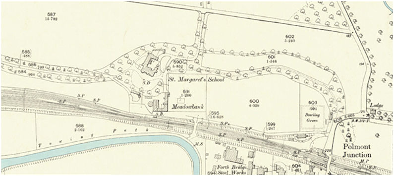 The estate was acquired by a consortium led by James Cooke-Gray, the headmaster of Blairlodge School. In 1895 a new company was established under the name of St Margaret’s School for Girls Company (Ltd) and under the patronage of Her Grace the Duchess of Montrose the share capital was soon taken up. J Cooke-Gray was the first chairman of the Board of Governors. The success of Blairlodge School had already shown that the general location mid-way between the populous centres of Glasgow and Edinburgh was suitable. The Falkirk area too was becoming quite prosperous and attracting many of the new businessmen to set up homes in the area. Meadowbank was, as the advert says, less than ten minutes walk from the railway station. The grounds of Meadowbank were extensive and well laid out with ample space for recreational facilities and walks. In a short article that the company evidently planted in the local newspaper the setting was described: “The present buildings, standing high above the carse of Forth on a dry gravel soil, are thoroughly substantial, and the rooms are large, lofty, and airy. Very considerable additions will be made to both buildings and grounds, and new class rooms and a large gymnasium (convertible into a concert hall) will be connected with the present premises by a glass corridor.”