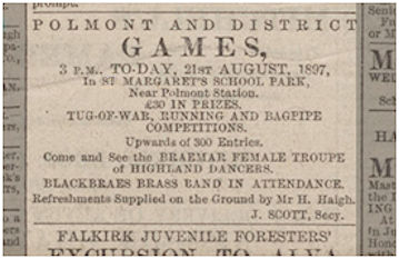 Illus 7: Advertisement for the first School Sports Day, Falkirk Herald 21 August 1897, 1.
