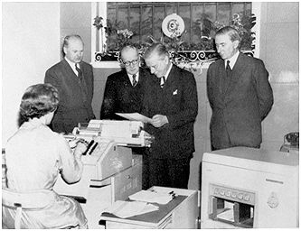 In 1954 the Bank embarked on a programme of structural alteration and improvement at its branch offices. To improve the depositors’ privacy new counter sections were installed at Stenhousemuir, Bainsford and Camelon. It now had 66 schools in Stirlingshire, West Lothian, Clackmannanshire and Dunbartonshire attached to it. Mechanical computers were introduced to take the tedium out of record keeping and to ensure accuracy.
