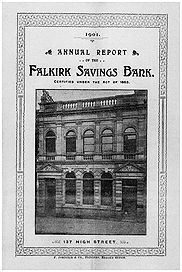Sometime around 2010 a member of the public handed in to the Falkirk Local History Society a scrap book containing press cuttings, pamphlets and a few remaining photographs depicting the story of the Falkirk and Counties Trustees Savings Bank from 1914 until 1962 and this short history presents a summary of the information therein, augmented by research in the Falkirk Herald and the Archives at Callendar House. The scrapbook has now been passed on to those archives.