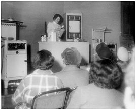 In March 1953 the Bank arranged for seven cookery demonstrations in the Gas Showrooms at Falkirk to demonstrate thrift. Miss Ruth Murray, home service advisor for the South East Division of the Scottish Gas Board, demonstrated to a packed audience of 200. It was so successful that it was repeated the following year and in 1955 knitting was added, with demonstrations from Paton and Baldwin’s at Falkirk, Alloa and Bathgate.