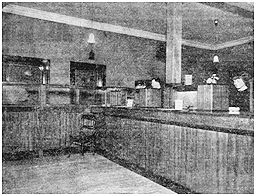 A curious incident happened at the end of December 1948 when the branch had its windows blown out in an explosion, caused by leaving a tin of adhesive too close to a fire. Workmen had been laying a sheet rubber floor. No one was hurt. The premises were purchased 1950. New counter sections installed 1954.