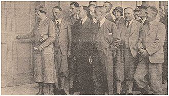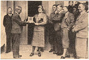 Illus: Mrs Allan opening the door of the Clubhouse (Falkirk Herald 10 May 1933, 16).