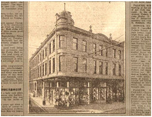 Millinery and mantle showrooms, boardroom and offices comprised the first floor. The showrooms were fitted with the latest pattern of glass-fronted cases, with trays for holding blouses, etc., each tray being made to lift out. J G Callander designed all of the decorations and fittings. The tailoring and dressmaking workrooms occupied the top flat and were large, well-ventilated and well-lighted. The sewing machines were all electrically driven.