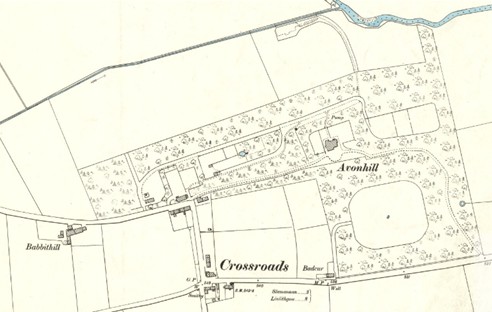 In 1872 John Paton, an Edinburgh publisher, purchased the small estate of Avonhill and erected a substantial Scottish Baronial style mansion there. Over the years James Paton expanded the estate by acquiring small pieces of land whenever opportunity arose. In 1883 he bought a thin strip of ground in Badcur from Elizabeth Gaston Ralston Waddell to provide a main western drive, at the end of which a lodge was built in the same style as the main house.
