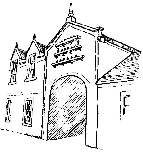 The pend was inserted around 1850 but did not operate for long and was blocked up before 1900. The doocot replaced one in the west gable of the same wing which can be seen on the left of the photograph above the blind window.