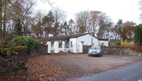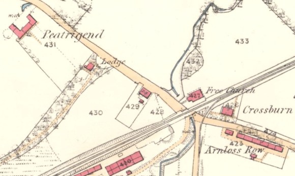 The east drive of Balquhatstone House was just over 1km long and before 1840 had been a public road. When it was close up it therefore required a lodge near Peatrigend to keep the public at bay. The lodge had a pyramidal roof and a central chimney typical of the first two decades of the 19th century. In front of it was a large semi-circular forecourt enclosed by curving walls with a set of four gate piers in the centre.