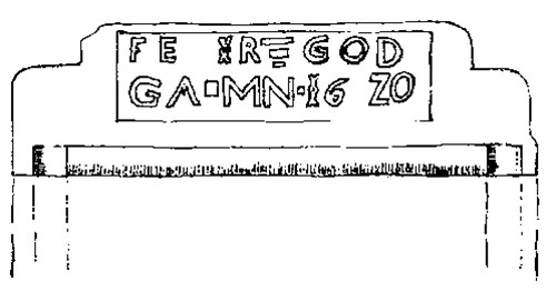 The datestone at Binniehill Farm was prominently placed over the lintel of an outbuilding, and in 2003 was incorporated into the façade of a new house near the apex. It has a roll moulded lower edge suggesting that it is from a lintel of a narrow door. The inscription reads “FEIR GOD/ GA.MN.16 20”.