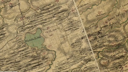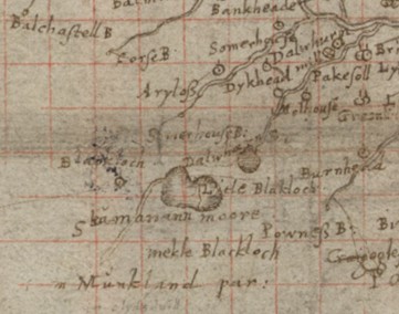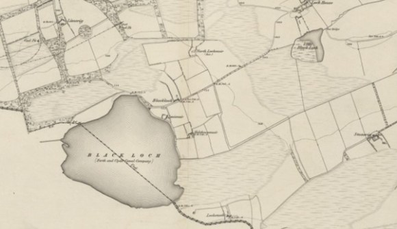Black Loch is a very common name for lochs in central and southern Scotland and probably comes from the peaty nature of the water – most are found on moorland. The Mekle (Great) and Litle Blackloch at Slamannan appear on Pont’s map of c1590 as natural pools of water.