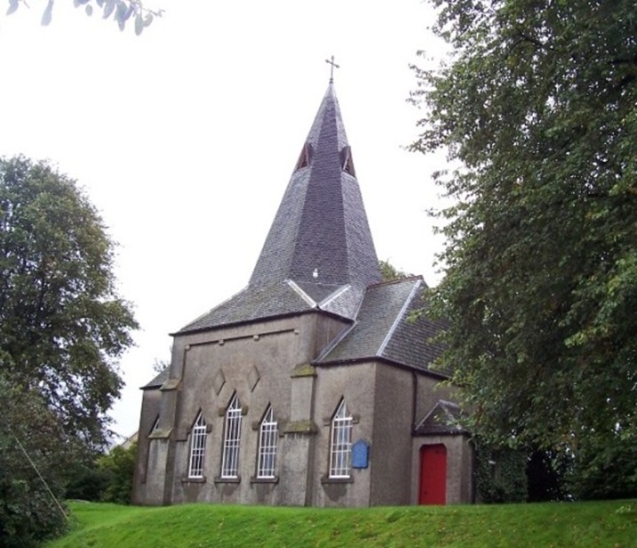…the services had first been held in Mrs Paterson’s Hall, then in the old disused school where the services were conducted by students from Old St Paul’s, Edinburgh.,, the school was cleaned and painted at the expense of the villagers… the first portion of the church about to be built would cost £700…