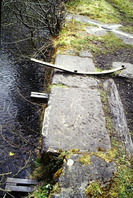 The basin or dock was 150ft square and was separated from the canal on its north-east side by a strip of land only 6.5m wide. In the centre of this side was an opening 15ft wide to allow barges to pass between the canal and the basin. The west side of the basin had a quay of massive stonework, and today its coping bears some remains of loading machinery. Grooves worn into its edge are said to have been made by pigs of iron being slid down into barges. The east side and the entrance are also faced with masonry using smaller blocks.