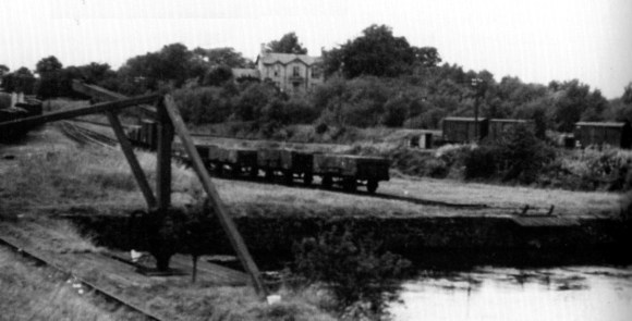 “if there was a barge being loaded with coals, how we stood fascinated o see the wagon being upended by a crane and, of course, the climax when the coals shot over the end onto the barge… quite a lot of coals were shipped from Causewayend to Edinburgh. The basin at Causewayend was constructed for this purpose and is described as having facilities to load barges with coals from railway wagons. These facilities included two cranes and two turntables for wagons. I have mentioned the crane which lifted the end of a wagon right up to tip the coals into a barge, but this crane revolved on one large centre spindle and could go round and round. A trick which the children used to play (and this was not confined to boys) was to get someone to hang onto the hook then wind them up and swing them right over the water in the basin, at times stopping and letting them hang with nothing but a drop into the water. The other crane was of a type more often seen with stay legs and was used to lift large boxes of coals from the wagons and dump them into the barge.