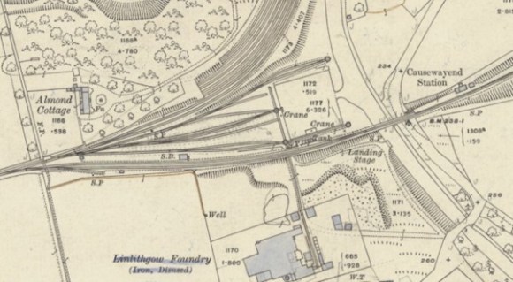 The canal basin was bypassed by the extension of the railway down to Bo’ness and a passenger station was placed to the north of the canal and called Causewayend Station. The rails for this through route were placed on an embankment to the south of the basin and a bridge carried them over the canal. It was the presence of the railway rather than the canal that led to the siting of the Linlithgow Foundry here, though it was able to make use of the 1820s landing stage. This foundry made use of the derelict opencast land and additional housing was erected for its workforce to the east of the existing dwellings at Causewayend.