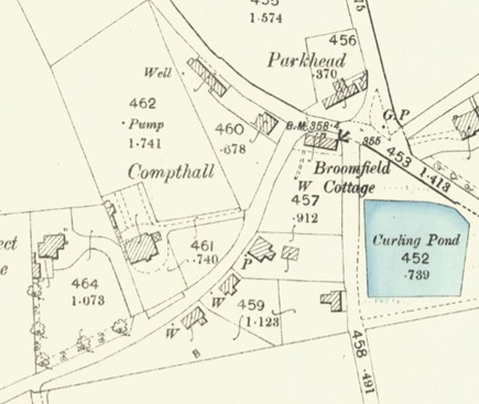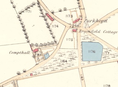 - Falkirk Herald 26 September 1903; “Desirable country residence for sale. To be sold, by public roup, within the Crown Hotel, Falkirk, on Thursday, 8th October, at half-past two o’ clock afternoon. That very desirable residential property, within ten minute’s walk of Polmont Station, known as Compthall, consisting of substantially-built dwelling-house, containing 3 public rooms, 4 bedrooms, large bathroom, laundry, kitchen, servant’s accommodation, etc; also stable, coach-house, and harness-room; walled garden and fields, the latter with frontage to the main road from Falkirk to Bathgate, and very suitable for feuing or building purposes. Total extent of ground 3 1/2 acres. feu-duty, £3 13s 6d; upset price, £1500…”