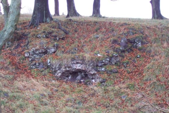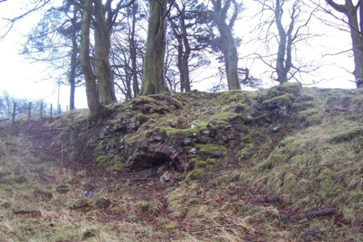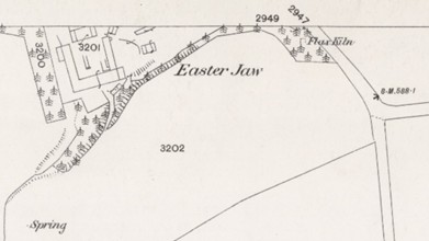 The remains of this flax kiln may be seen at Easter Jaw from the road between Slamannan and Shieldhill. It is set into the natural hill slope and faces north (the hill was probably a shilling hill). The main structure is made of local whinstone bonded with a hard white mortar. It has a recessed tapering brick arch at the mouth suggesting that it has been repaired in the late 19th century.