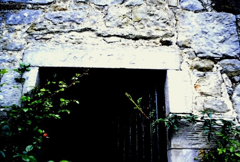 Hill Farm south of Candie has a substantial dwelling house built of narrow ashlar blocks and a series of outbuildings in which are found a number of datestones. The oldest of these is a lintel inscribed “J.C.1742” (the stops being lozenge shaped). The initials are those of John Calder.