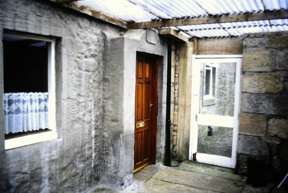 At the back door to the house, slightly obscured by a flimsy porch, another panel surmounts the entrance. It is rectangular with rounded corners and has a narrow raised border. Any inscription that it once contained is now illegible.
