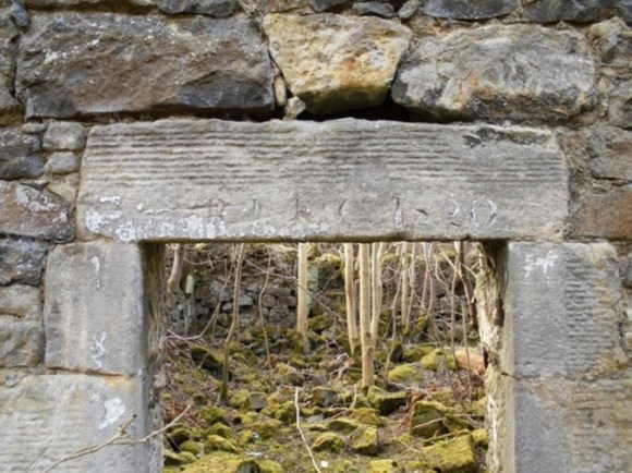 In 2025 a proposal to reduce the height of the remaining gable of the upper mill for safety reasons led to the author conducting a quick survey. The building measured 10.7m west/east by 6.7m north/south. The quoins of the south-east corner were of whinstone and it is assumed that this material was originally used for all four corners of the building. The north-east corner had been rebuilt and heightened using dressed sandstone. This was the same type of stone used in the central doorway with the inscribed lintel of 1820. There was, however, no indication that this door surround with its slightly setback margins had been inserted at a later date.