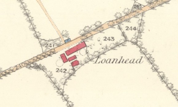 Loanhead was a farm to the west of Slamannan on the road between Townhead and Southfield. The 1860 Ordnance Survey map shows it as a long narrow building parallel with the road. Two gin mills are represented indicating that it was a working farm.