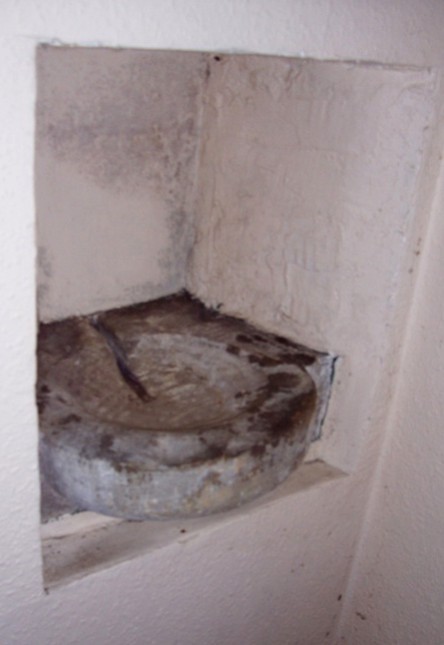 The dwelling, now known as Loanhead Cottage, occupies the eastern end of the main building. The chimney on the east gable bears the date 1829, the whole inscription reading “1829DL” on a raised panel. A recess in one of the rooms here contains a stone basin which is traditionally said to have come from Slamannan Parish Church.