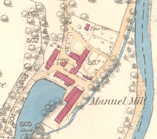 Indicated on the 1860 Ordnance Survey map this doocot has now completely disappeared. It stood immediately north of the Manuel Mill House and was rectangular in plan. A doocot is mentioned here in the Edinburgh Evening Courant on 2 February 1754.